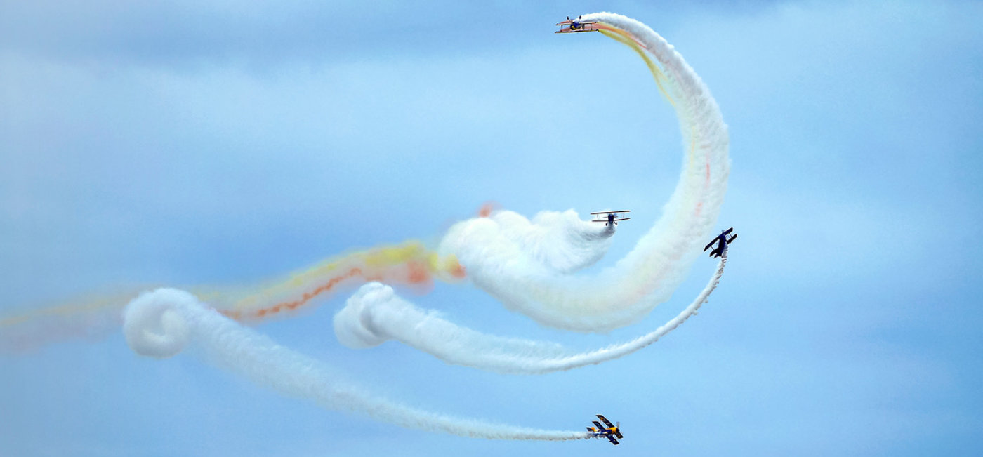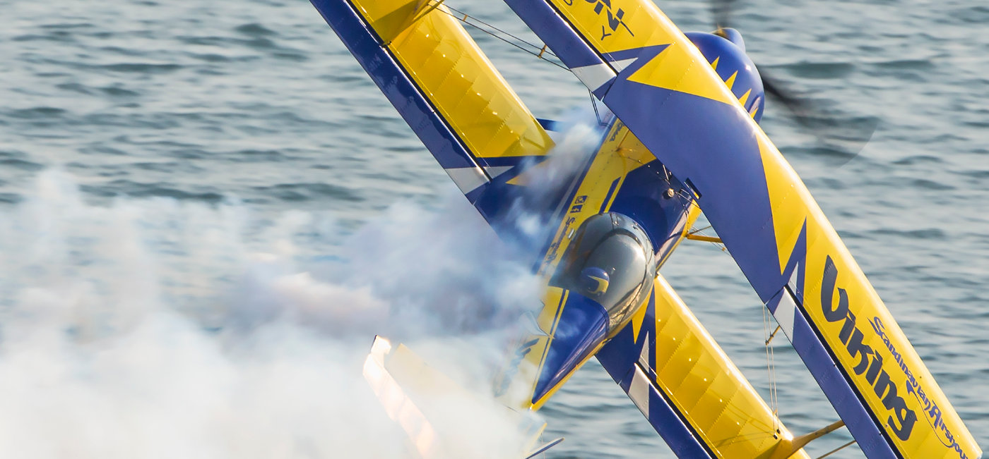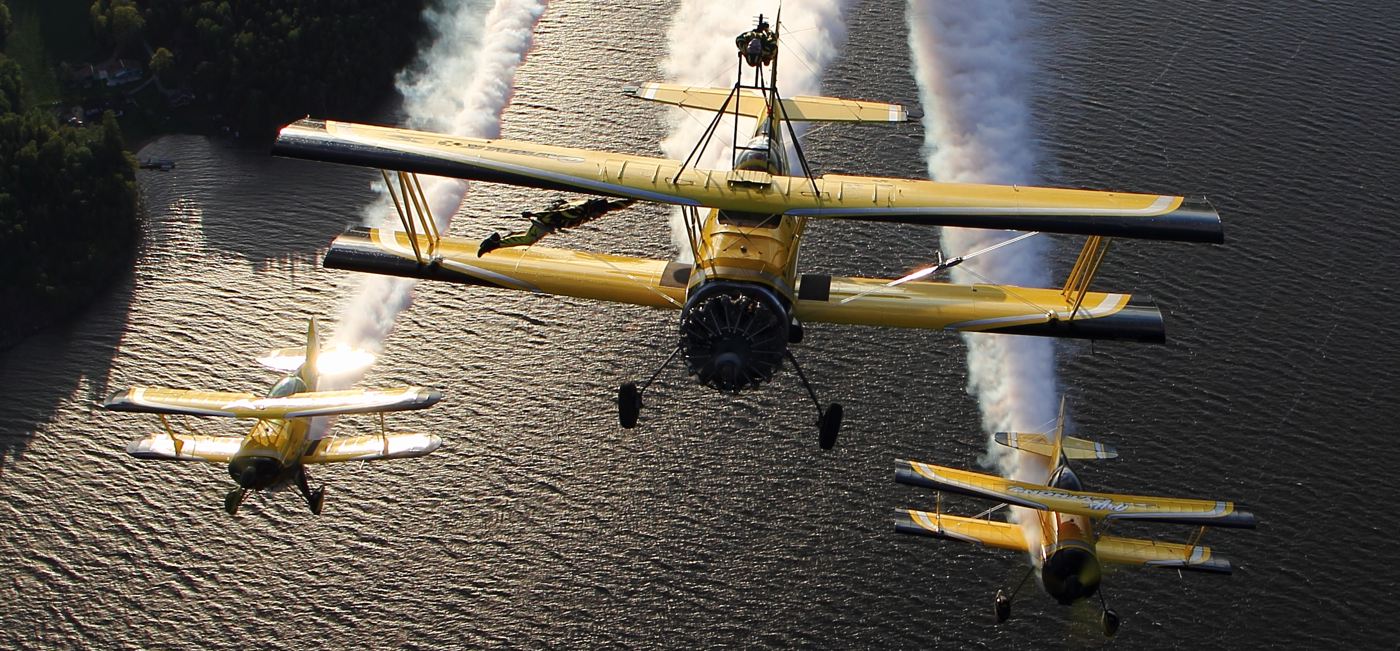 Scandinavian airshow is proud to announce its new aerobatic formation group RAGNARÖK! The RAGNARÖK airshow is a unique formation group with five biplanes presenting a highly intense, dynamic formation display with white or colored smoke for daytime shows and with the option for pyrotechnics for stunning sunset/evening show.